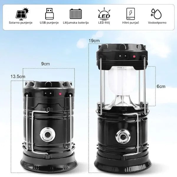 Puniva solarna lampa za kampovanje + baterijska lampa | CAMPGLO
